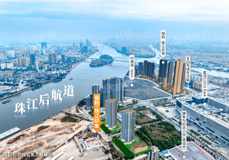 保利珠江印象位于荔湾区东沙国际商贸港片区,是广州“后航道沿江经济带”核心区域,紧邻珠江后航道,坐拥8万㎡内港湾江景资源,被誉为“广州首个内港湾小户型豪宅”