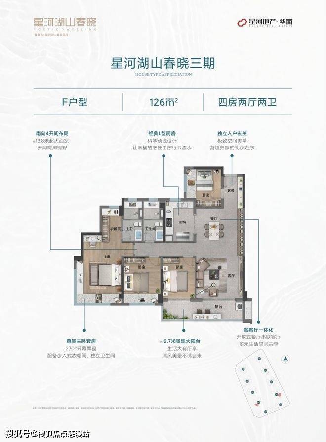 星河湖山春晓三期是斗门第一批新规后的产品,实用率超过100%。其首推的4栋,产品涵盖建面约126㎡四房、建面约116㎡四房、建面约89㎡三房。