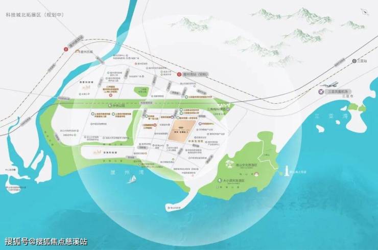 •市⺠健⾝中⼼、科技城灯光球场、通海公园、三角梅科博园、中央公园、科技城⽂化客厅、南繁公园、南繁博物馆、海洋科技馆、科技城图书馆、科技城⽂化馆、科技城体育馆。