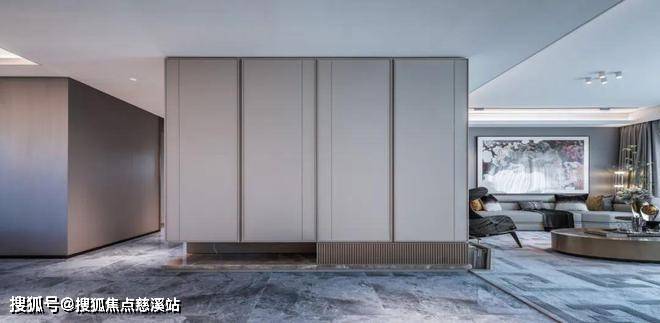 归家第一步便是“影壁式”玄关,入户的一瞬间“府门大户”的气息扑面而来,收纳功能和私密感并存,豪宅应有的仪式感分毫不减。