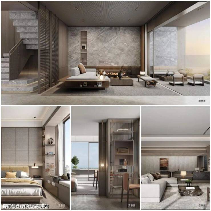 建筑与自然融为一体,立面镶嵌更具暖意的山林色系。约0.3容积率,低密上筑,花园般生活意境。