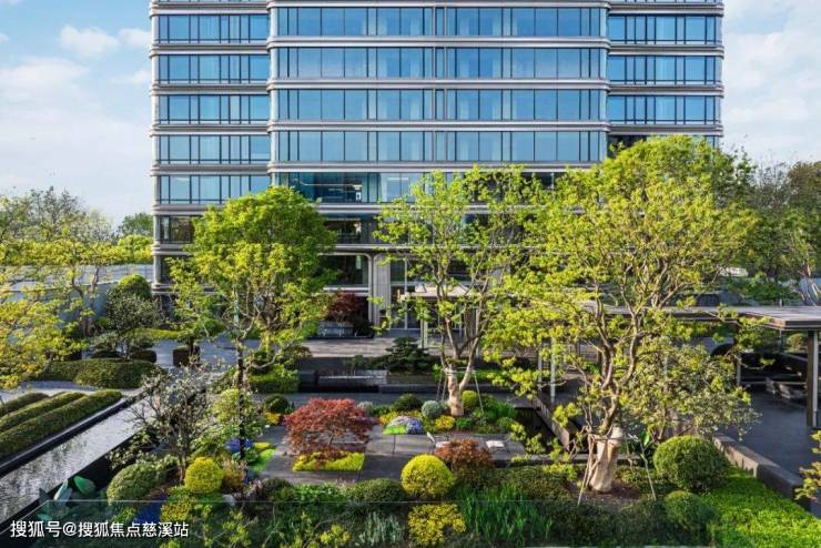 园林景观中取意万里长江中的“岩壁、岛屿、湖泊、溪水、台地、绿洲、林屿”等7种形态,构建出玉堂华门、浮岛前庭、镜湖水院、溪涧庭院、云台聚场、绿洲谧境、林屿乐园,7重沉浸式景观享受。