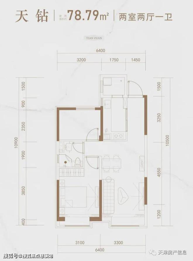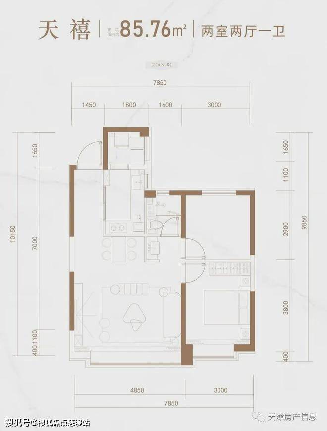 78-85平米是高层户型,一个是标准H户型,一个创新做了宽厅。总价约280万,相对低,属于是南开区新房的门槛价了。