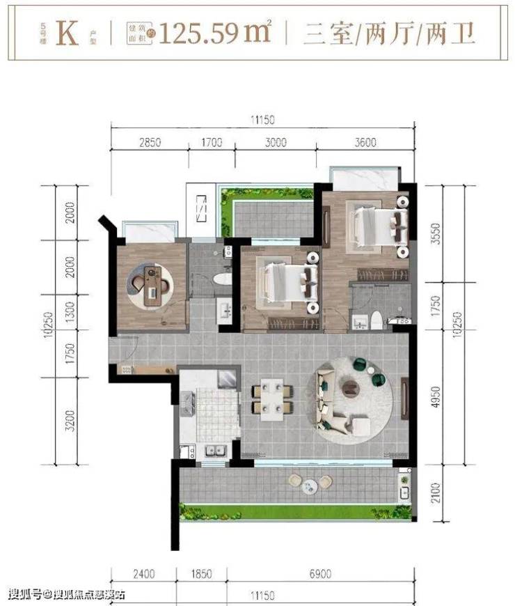 ✨ 6楼C户型约93㎡舒阔两房两厅两卫