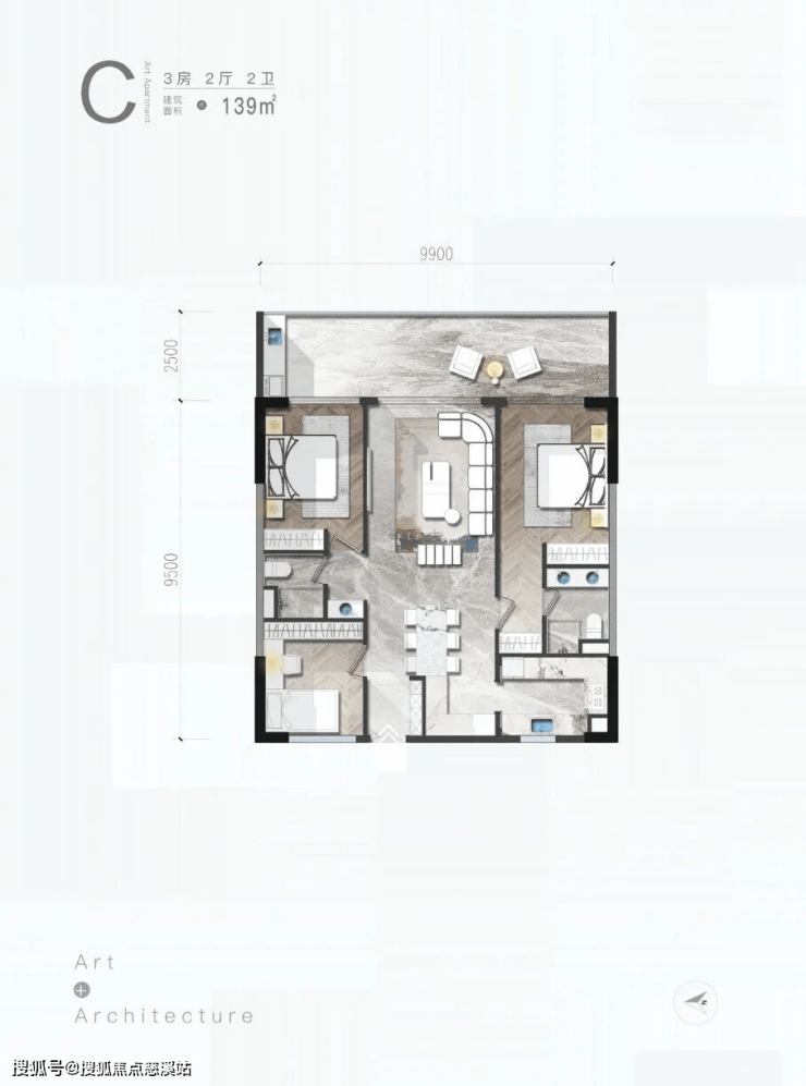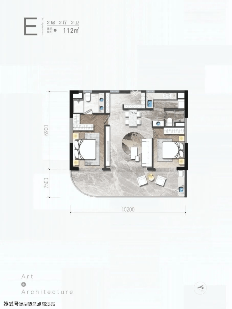 E户型/2房/2厅/2卫/112㎡F户型/2房/2厅/2卫/105㎡