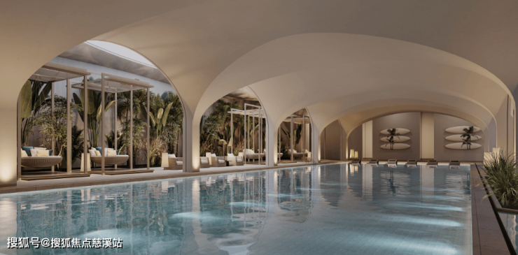 约3000㎡下沉式会所涵盖成人泳池、儿童泳池、健身房、私宴餐厅、下沉酒吧等多样邻里复合功能,满足业主社交、健身等多种需求。