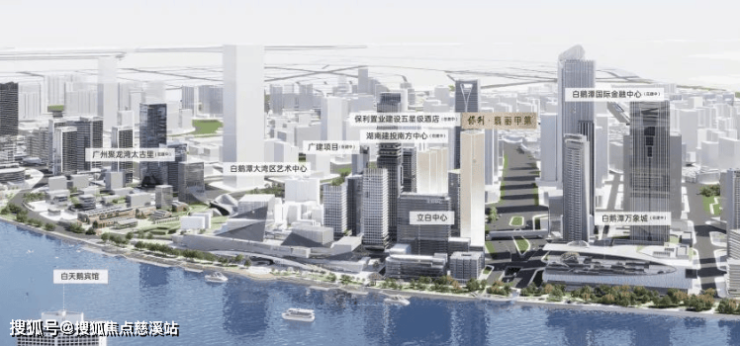 1.项目位于白鹅潭商务区核心区,临近三江交汇处,拥有稀缺江景资源。周边配套完善,包括广州万象城、聚龙湾太古里等重奢商业地标,以及三馆合一等文化设施,未来将成为荔湾CBD的重要门面。