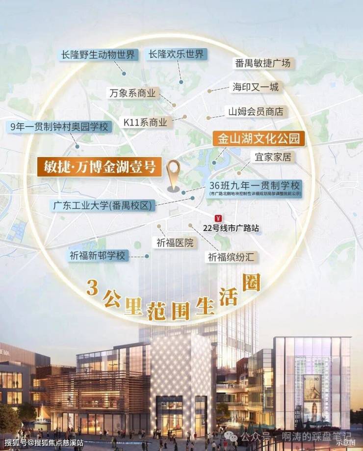 敏捷地产,作为番禺的先驱者,深耕番禺,不仅打造出万博商业门户——番禺敏捷广场,还给番禺贡献24座理想人居作品。2025年,敏捷地产从总部地块出发,在金山湖畔,为万博CBD筑写湖居壹号作品。