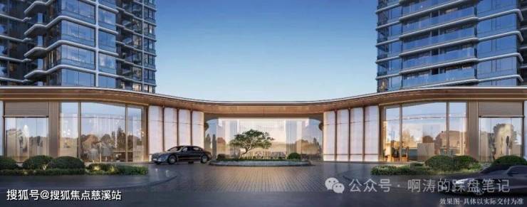 ◎长达约120米弧形主入口界面,城市级封面门庭,集萃名贵奢石臻造,铺陈都会风华,礼遇当代门庭,呈现繁华CBD里的曼妙意境。