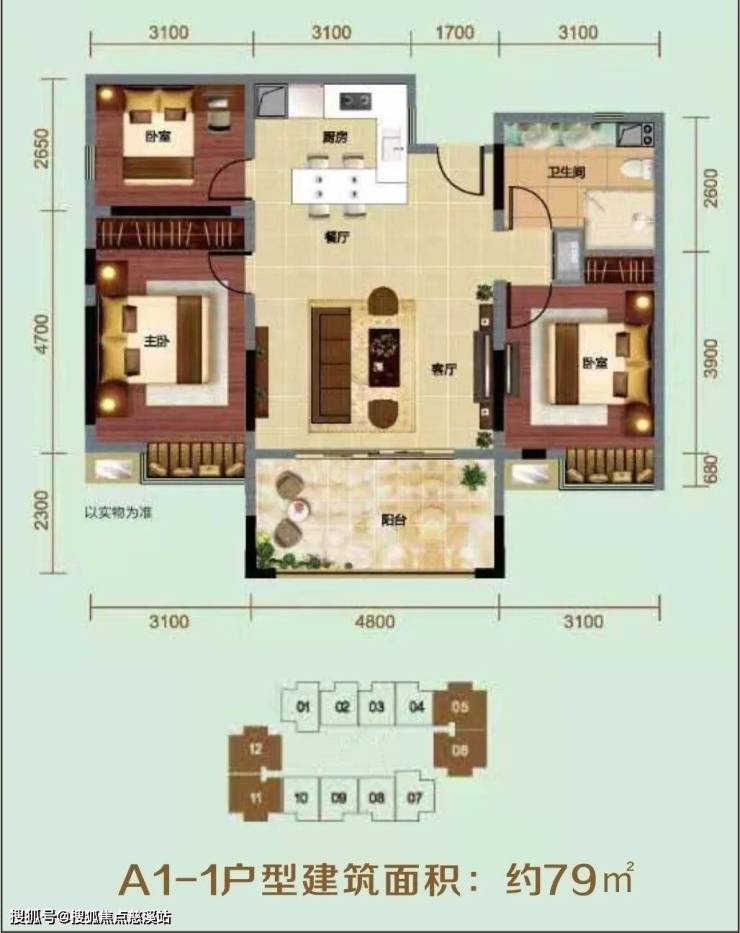 主力产品:59~61㎡两房 78.86~81.25㎡三房