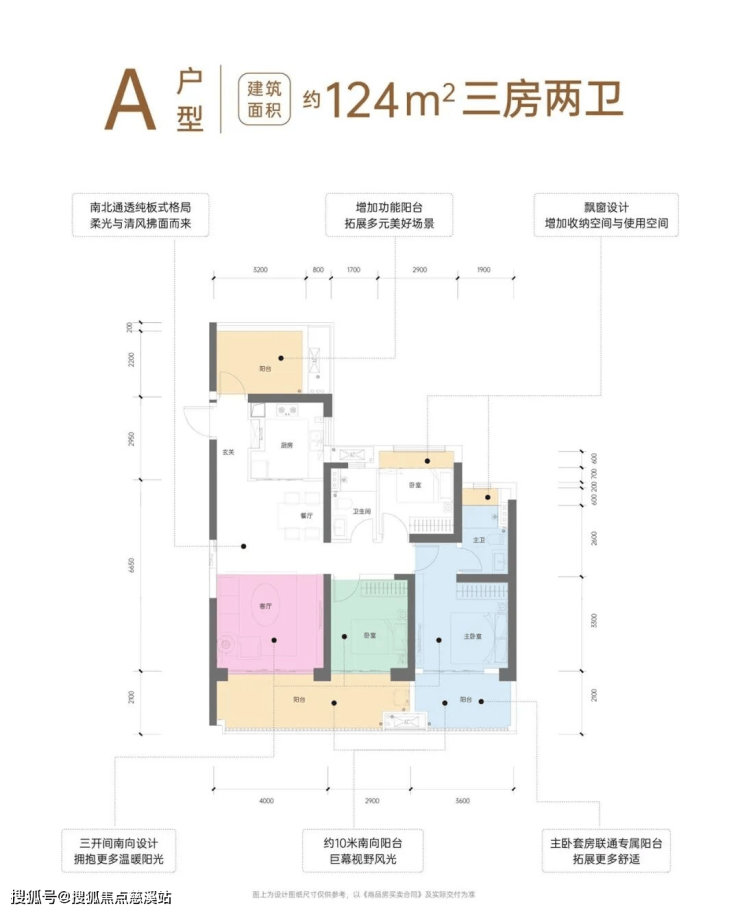 主卧套房设计,专属南向阳台空间与卫生间飘窗设计,舒适从容