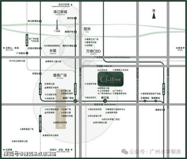 一站即达番禺广场站:地铁3号线、18号线、22号线、3号线东延段(在建中) 、17号线(规划中),五轨交汇,一站畅行琶洲,两站通勤珠江新城。