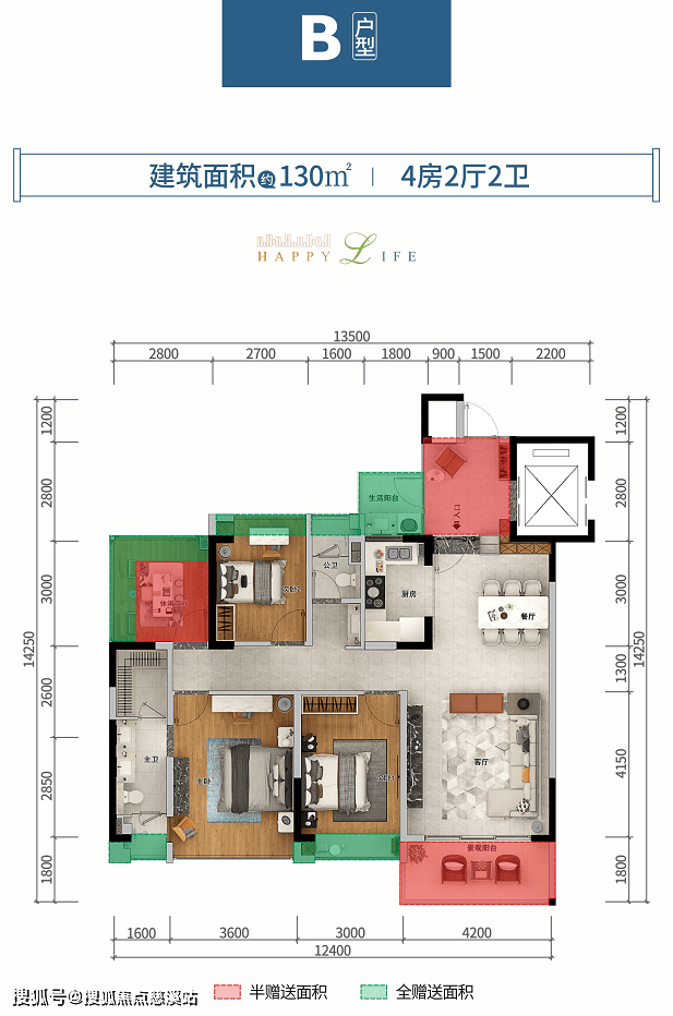 客厅开间4.2米,户型方正,全明通透,动静分区合理;