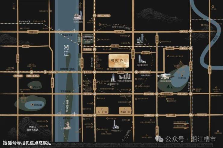 在地段价值上,养云占据了不可复制的优势。项目紧邻芙蓉中路,周边地铁1号线开福寺站约500米,6号线湘雅医院站约800米,出行便捷。同时,湘雅路过江隧道也在建设中。此外,五一广场、IFS国金中心等高端商业环绕,湘雅医院等优质医疗资源近在咫尺,烈士公园、湘江风光带等生态资源丰富,人文与自然完美融合。