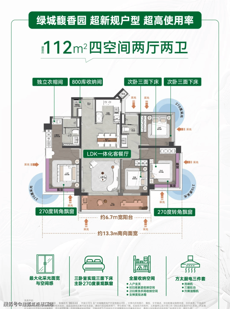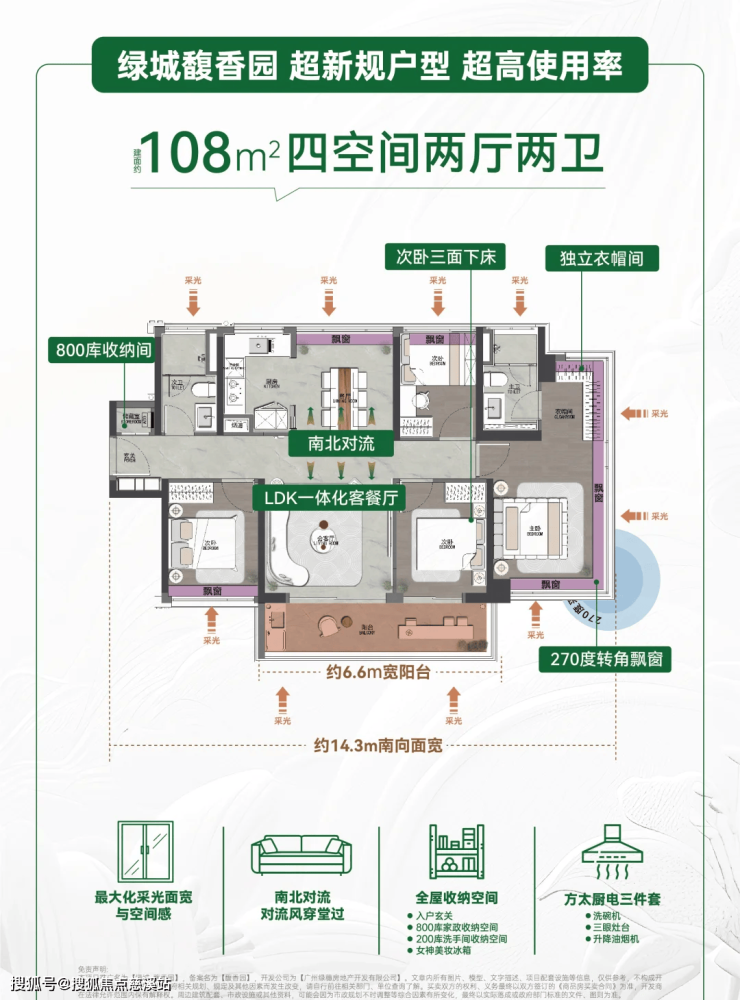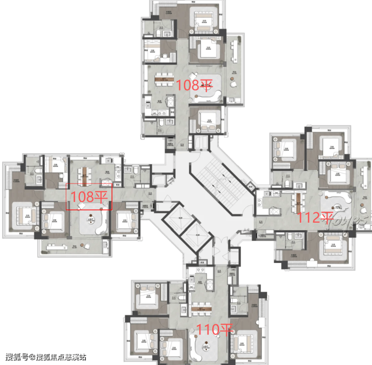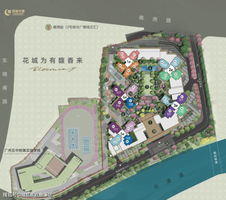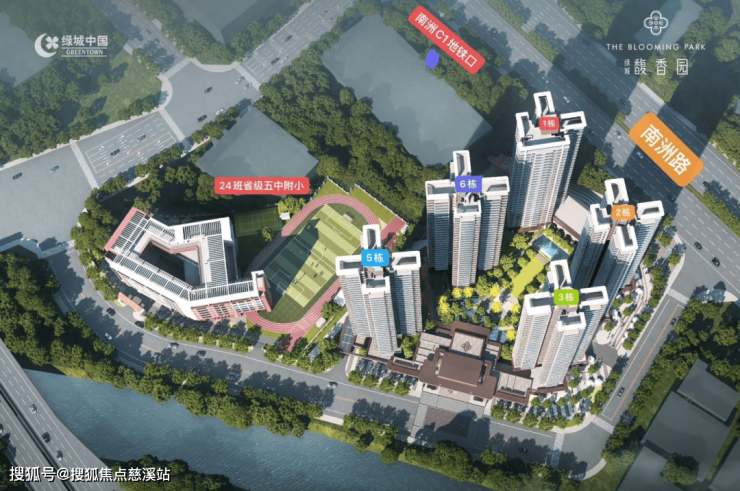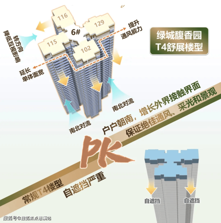 规划了 5 栋全南向住宅和一所小学,洋房仅32层高,采用(T4/T5)舒展楼型设计,对比传统布局,实现了四大优势:
