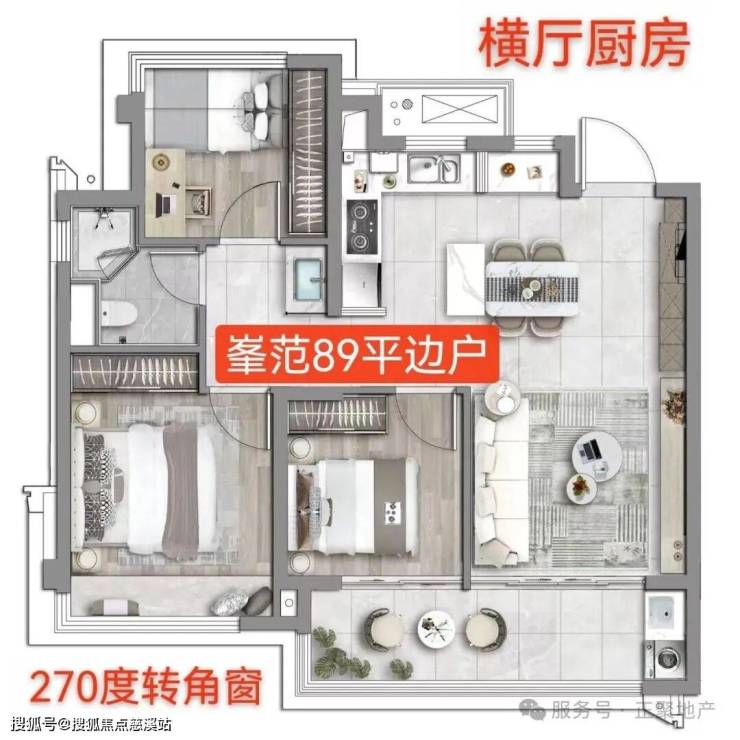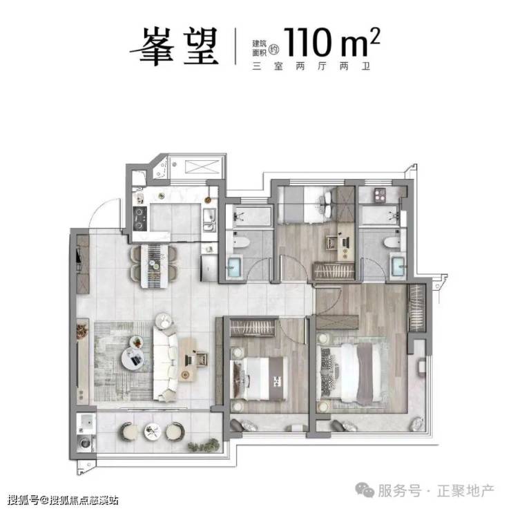 A户型 峯望 三室两厅两卫 | 建筑面积约110㎡,阔景宽幕三居|全南京唯一110㎡内阳光主卧270°观景采光