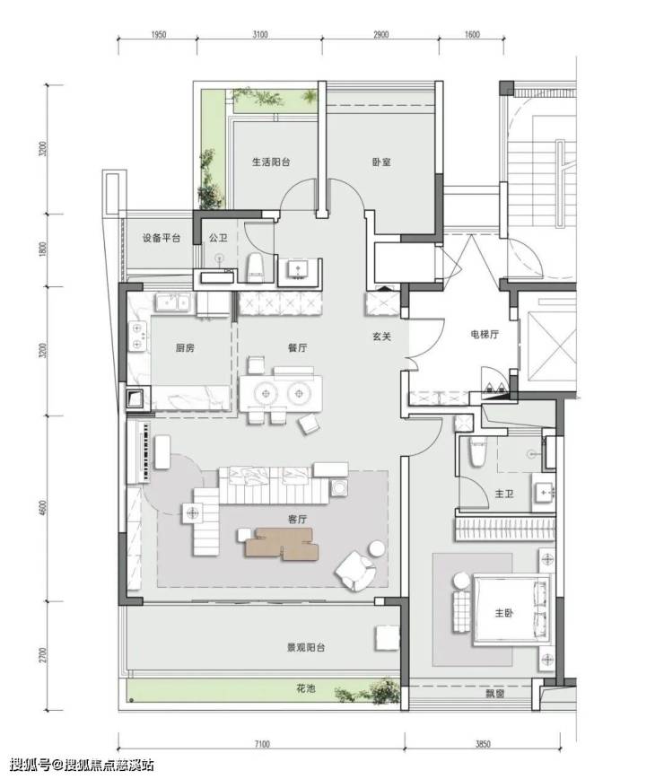 8.得房率:私家电梯厅私密独享,户内超高赠送,户户近100%得房率。
