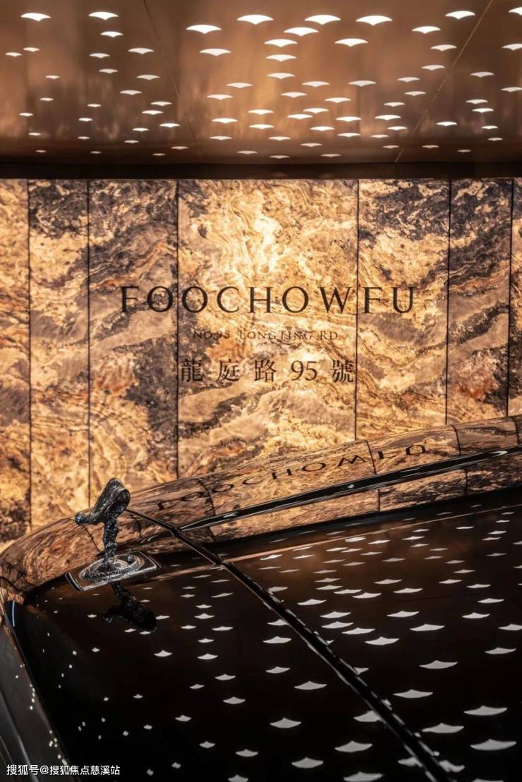 龍庭路95號无处不散发着贵气,其贵气源于对全球奢石的精妙运用。在业主归家的社区入口这一仪式感最强的区域,项目采用了昂贵的范思哲黑天然奢石浮雕面铺设,闪金羽毛纹理的铺贴营造出如五星级酒店般的流光溢彩。