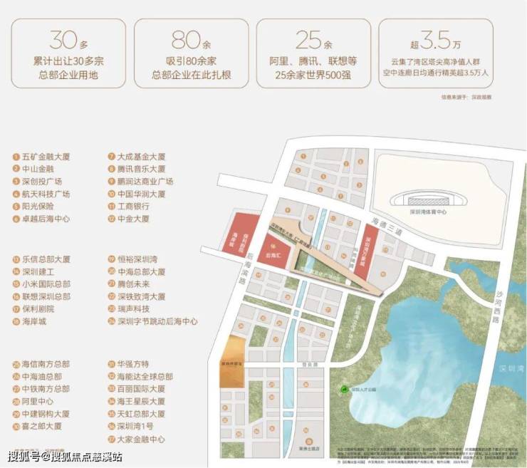 后海总部基地,地处粤港澳大湾区几何中心,是链接深圳各核心功能区的关键节点,是大湾区资源密度最高、制度最开放的总部经济聚集地,创富密度全国榜首,世界500强领袖级总部集群。深圳湾澐玺,全球核心城市的臻稀资产。(数据来源:深政观察)