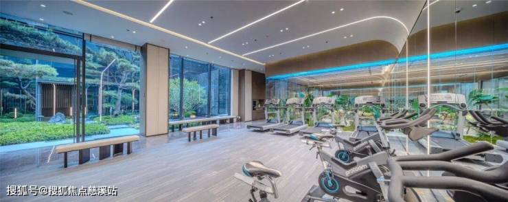 另外小区配有1200㎡左右的会所。其中有两点比较突出,其一就是健身房,面积不错,正对着下沉庭院,有通风和采光。