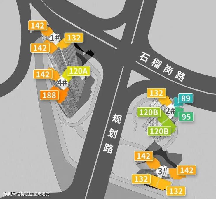 珑璟台为广州地铁独立开发,位于18号线龙潭站上盖,共分成两个地块,规划了4栋29-30层住宅,2号楼有两条梯腿(89-95的户型)为政府回购人才房,从沙盘上可以看出,1栋和4栋位于西边的地块,2栋和3栋位于东边的地块,两个地块之间规划了一条市政路,整体小区比较小,几乎没有花园,楼下三层是商业,四楼为架空层,未来电梯可直达地铁站,中间有一条市政道路,未来等红卫村旧改完成可直达琶洲,小区前面是海珠湖公园,北靠琶洲CBD,楼下是地铁站,去琶洲和珠城都很方便。