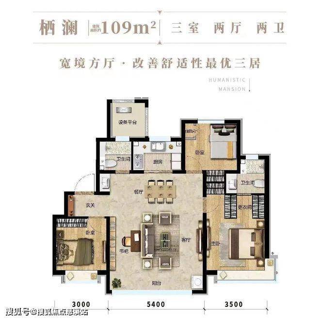 如果非要选出个人最喜欢的户型,那还要说一下洋房109㎡三室两厅两卫的户型。1梯2户,宽境方厅,舒适度和性价比双高。方厅面宽约5.4m,阳台匹配了超大窗墙比,阳台的采光面接近4.5m,方形的设计增加了各区域交互利用的空间,使餐厅、客厅、厨房、阳台四大功能区紧密相连,动线非常高效,还可以根据需求改造成“3+1”户型。