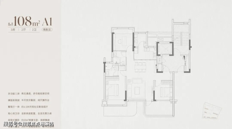 建面约108㎡的洋房,客厅开间达到约4.5米,没有过道空间浪费,且户户带独立家政空间,新街口6公里范围内400+万级洋房四代宅,全城难找。