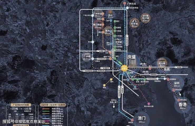 通过庆盛站搭乘广深高铁,9分钟到东莞虎门、30分钟到深圳北、35分钟到西九龙。