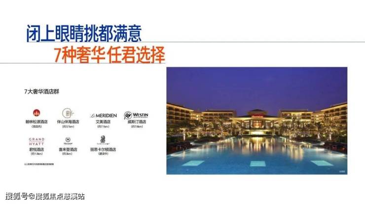 7座奢华酒店 — 朝林松源、君悦、伴山伴海、喜来登、艾美、威斯汀、丽思卡尔顿(建设中)