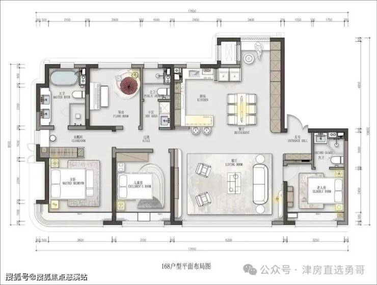 E户型168:四室两厅三卫(实际面积171㎡)