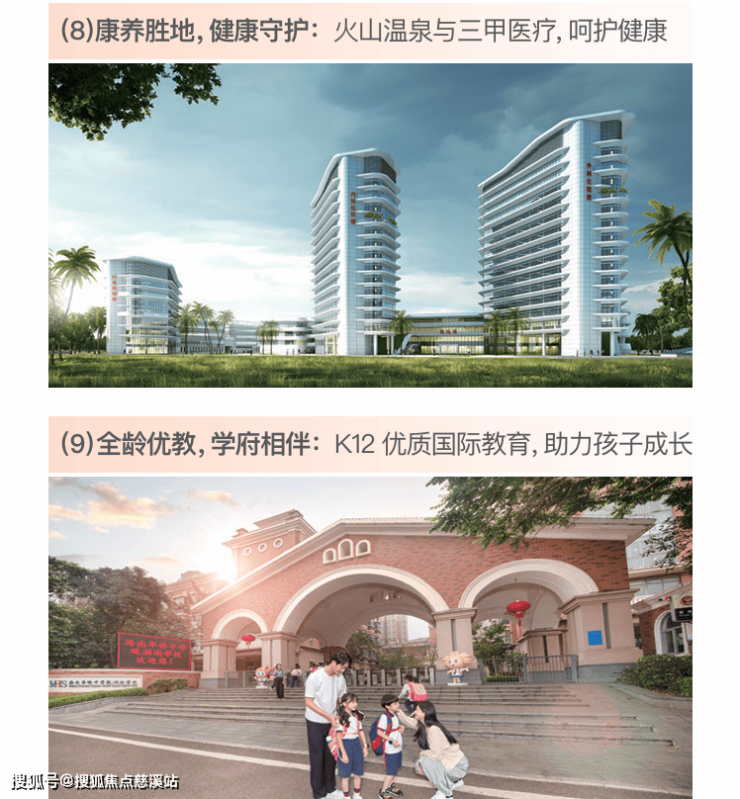 配套设施:项目周边配套丰富,包括10个18洞火山岩高尔夫球场、168个火山岩矿温泉泡池、海口观澜湖新城(汇聚300余个品牌)、五星级酒店群、海南省人民医院南院(三甲医院)等,同时拥有全龄段教育资源,从幼儿园到大学一站式配齐