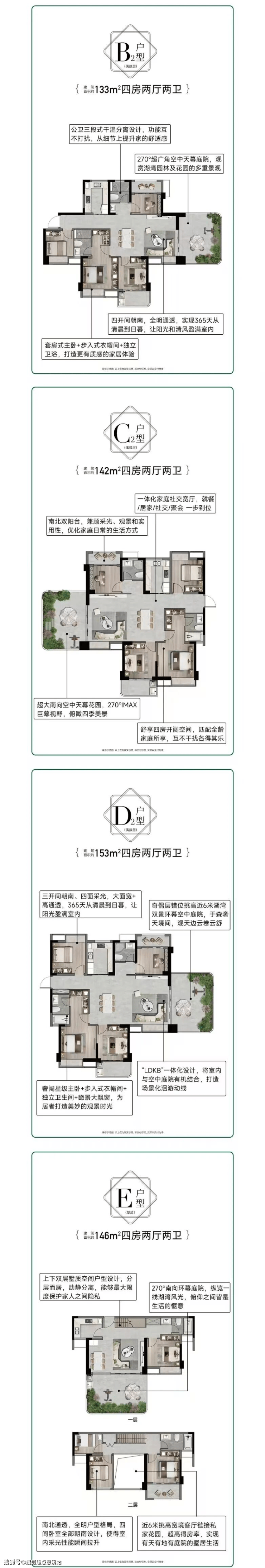 产品类型:主力户型为112-153㎡的三至四房,涵盖高层住宅及复式产品,主打“第四代住宅”概念,强调空中花园、错层设计等创新空间布局。