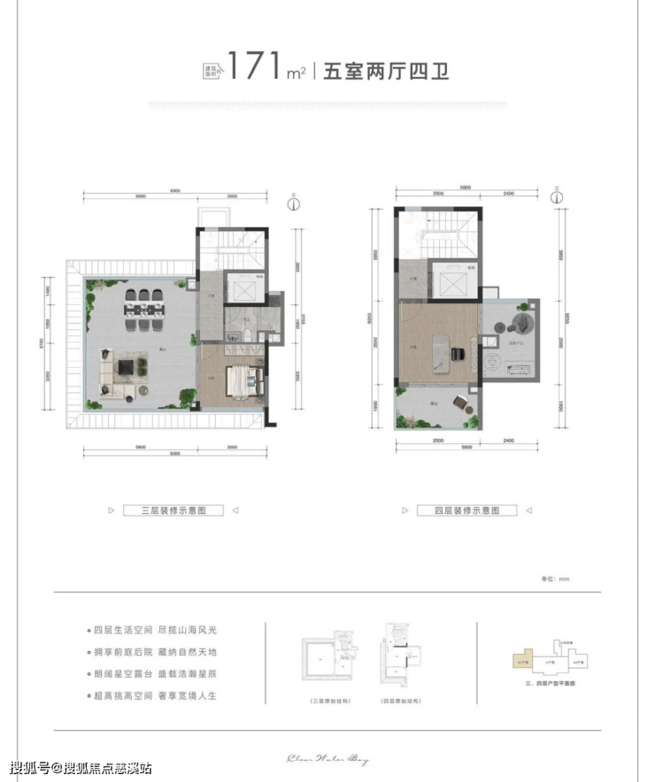 建筑面积:171平,使用250平,花园170-300平