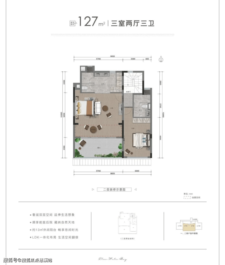 建筑面积:127平,使用150平,花园70-90平