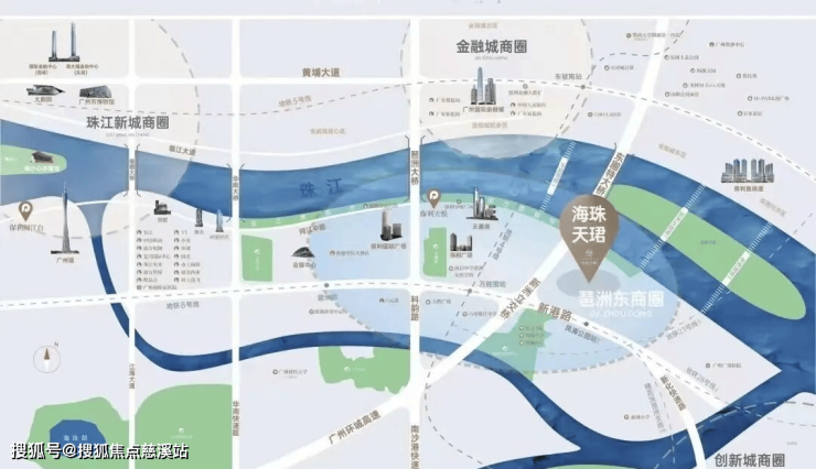 琶洲作为未来广州经济增长引擎,基建配套也是重中之重,目前琶洲已形成涵盖地铁、城轨、高速以及过江隧道的交通布局,串联珠江新城(直线距离8km)-金融城(直线距离2.5km)-创新城(直线距离4.4km)三大核心,通勤核心区域并向外辐射湾区城市群。