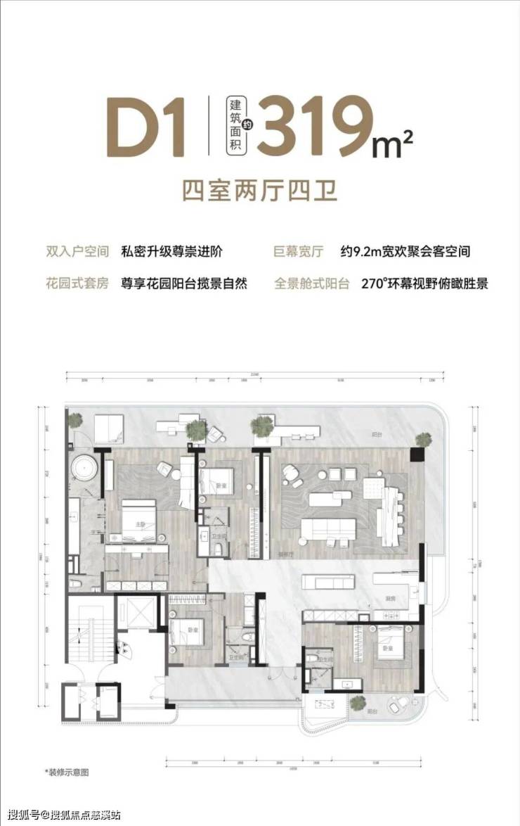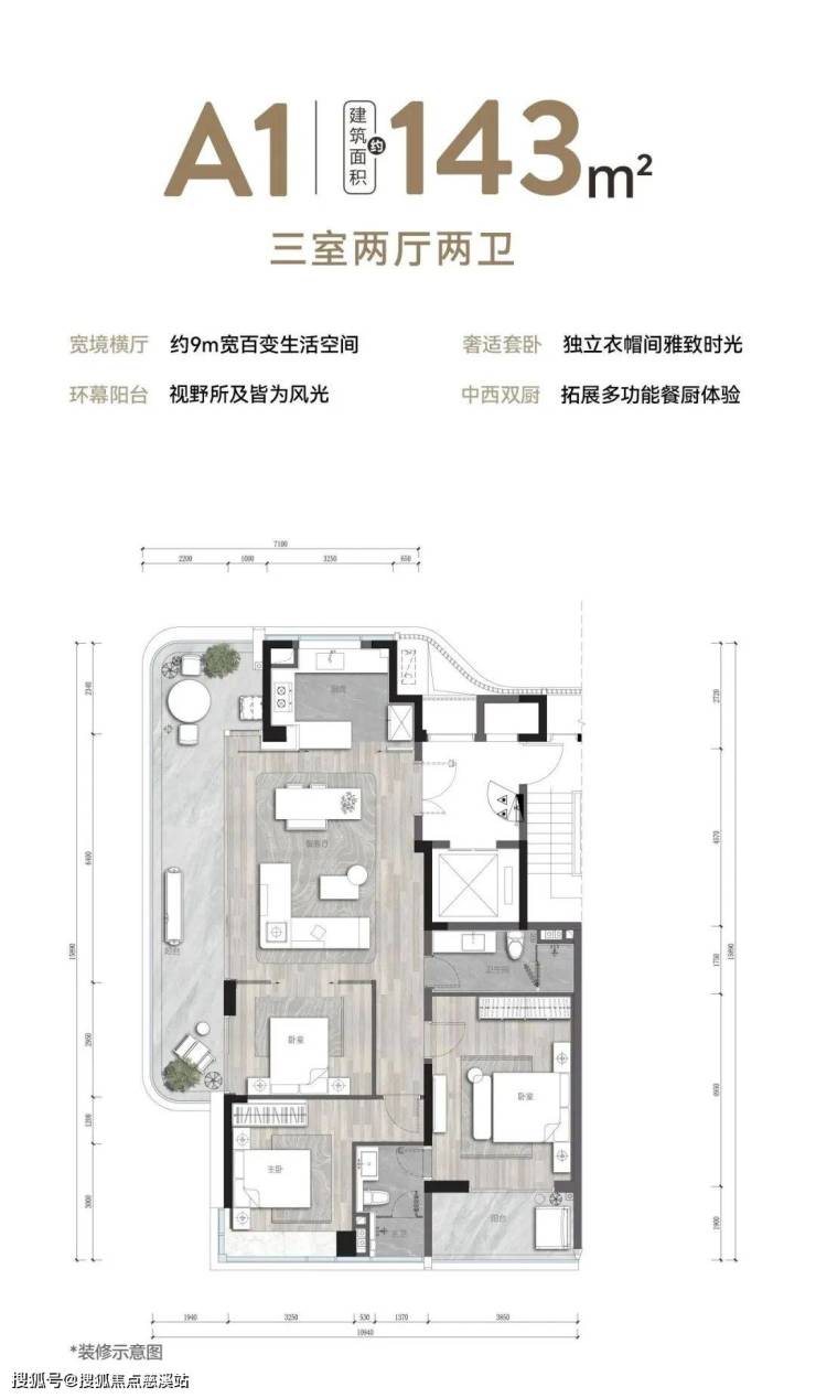一期建面143平三居,191平、255平、343平四居奢阔大平层