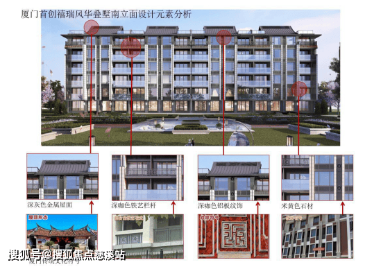 基于对闽南传统文化、地理气候、人文情怀的思考,首创·禧瑞风华构成中式传统建筑文化与现代科技相融合、中式建筑元素与现代建筑手法相融合、传统意境与现代精神相融合的新闽南风格。同时,提取闽南古厝风韵,以经典闽南纹饰、三段式结构、水平线条、中式屋檐等立面美学,通过传承与再造,匠造符合当代人审美的建筑立面。