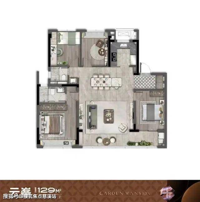 三大特点 :①大横厅+真四房 ②得房率高 ,尺度空间足 ③装标高实用性强
