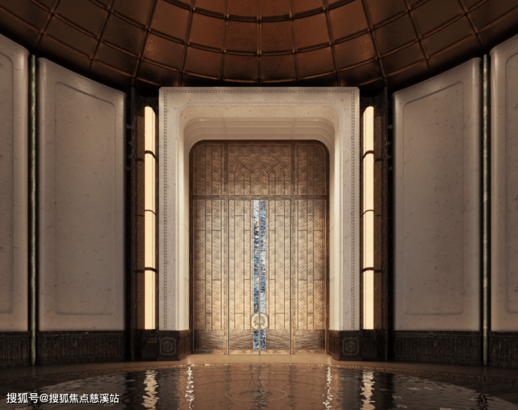 月底前,保利津门天珺的实景体验区会全面开放。目前已经呈现的大门,尺度跟质感惊人,创天津大门高度之最。门扇是国家非遗制铜工艺,据说整个大门有10多吨重,2对门把手高度超过7m,没错,门把手的高度。左珠江,右海河,蓝、绿、紫写意海浪形状,上面用掐丝珐琅工艺绘了9条鱼,象征长长久久年年有余。在实景上卯足力气的已经是行业惯例,大门冲击力之后,保利津门天珺的实景体验区,能不能在景观上给天津市场新的冲击点,就看月底的正式开放了。