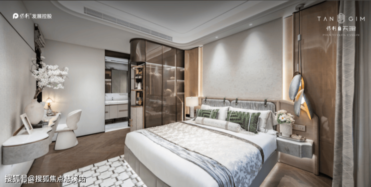 特意翻了翻镜柜,是防潮耐磨的铝合金材质,有吹风机与电动牙刷美容仪的充足供电口。橱柜面层是金属质感,易清洁防污,全屋集成的智能化,常规精装房在这些细节上是板材、预留以节约成本。但保利的精装交付,连细节全部考虑周全了。如果换房存在不确定性,估计大多数学区兼顾改善的客户会说服自己冲一把这个户型。