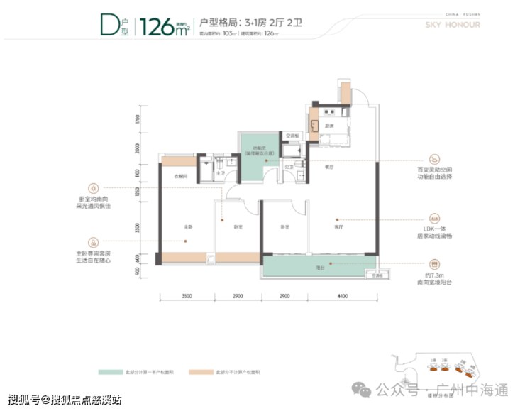 约126㎡四房 :LDK 一体化聚厅,家人互动、朋友聚会都能 “敞开玩”;超大主套三边下床,尺度感直接拉满,豪宅既视感拿捏 。