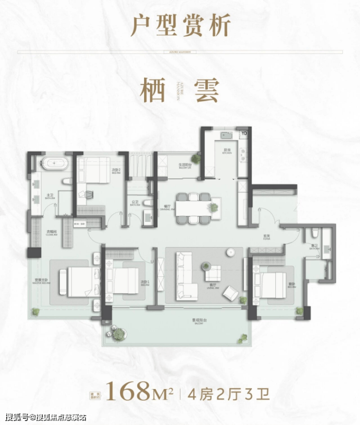 168㎡户型则配备双独立套房,主卫采用酒店式双台盆和浴缸设计,尤其适合三代同堂家庭。