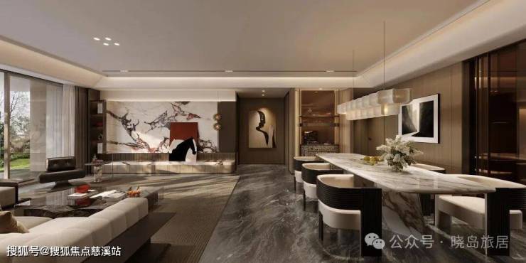 公区以海派为笔触,染现代之气韵,融汇成一方优雅生活的序章