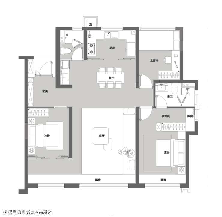 项目住宅为高层产品,采取两梯四户布局。户型总计5款,分别是建筑面积约93㎡、111㎡、118㎡、132㎡、143㎡。所有户型均基于「逆向定制」设计原则,在空间细节上实现多重突破。如将厨房内52cm见方的烟道,均被外移建筑本体以外,室内不再占用厨房转角空间。所有飘窗窗台高度仅约35cm,进深却有约70cm(部分为60cm)。高度降低,铺上软垫后的高度也更接近沙发,比传统45cm高飘窗台更符合人体工程学。进深的加大,实用空间就变得更多,同时拓展出丰富的使用场景,不仅限于卡座、吧台、梳妆台、茶台、书桌等等。