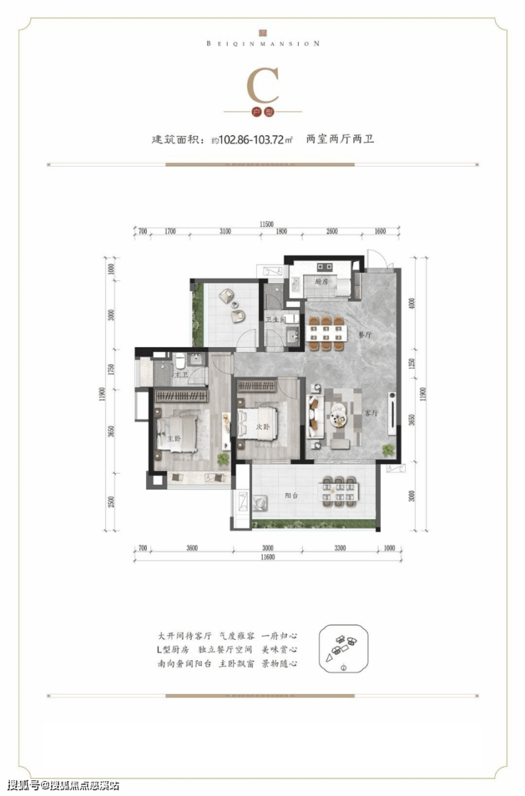 主力户型逾16米建筑面宽,府藏奢阔天地;约4.2-6.8米横厅设计,逾9米观景阳台,于热带山海之间,体验生活悠然;