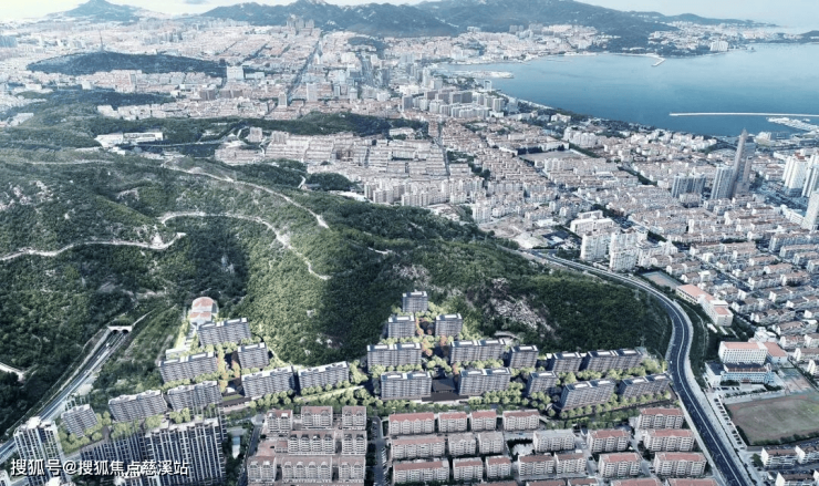 实景鸟瞰图来看,整个项目东西延展,东侧到统一南路,西侧到统一路,南侧现状小区,北侧是葱绿的山体。