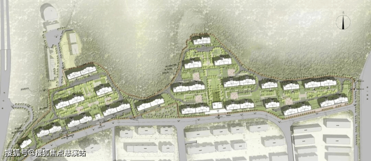总平面图来看,项目呈现聚宝盆形状,南北最窄处是一栋楼座,最宽处是四栋楼座。