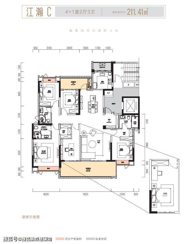 建面约211㎡户型: