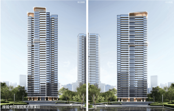 建筑外立面主打“现代精奢+滨水美学”,采用非对称布局,营造“大实大虚”通透视觉效果,横向线条舒展,落地玻璃窗与 270°转角全景窗无缝衔接,让江景与自然光成为空间主角,成就宽幕观江的极致体验。