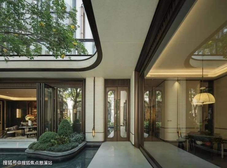 庭院空间采用创新的三重嵌套设计,精心构建出三种截然不同的情绪氛围。中心庭院的天花透光拼花窗格随日影变换,为在此交流的居民投射出斑斓光影,营造出梦幻而浪漫的氛围;凤凰廊架后方的紫藤花境,以自然植被打造出充满诗意的浪漫意境;而对称设计的狮头涌泉,则带来静谧而优雅的氛围,为居民提供一个宁静的休憩空间。